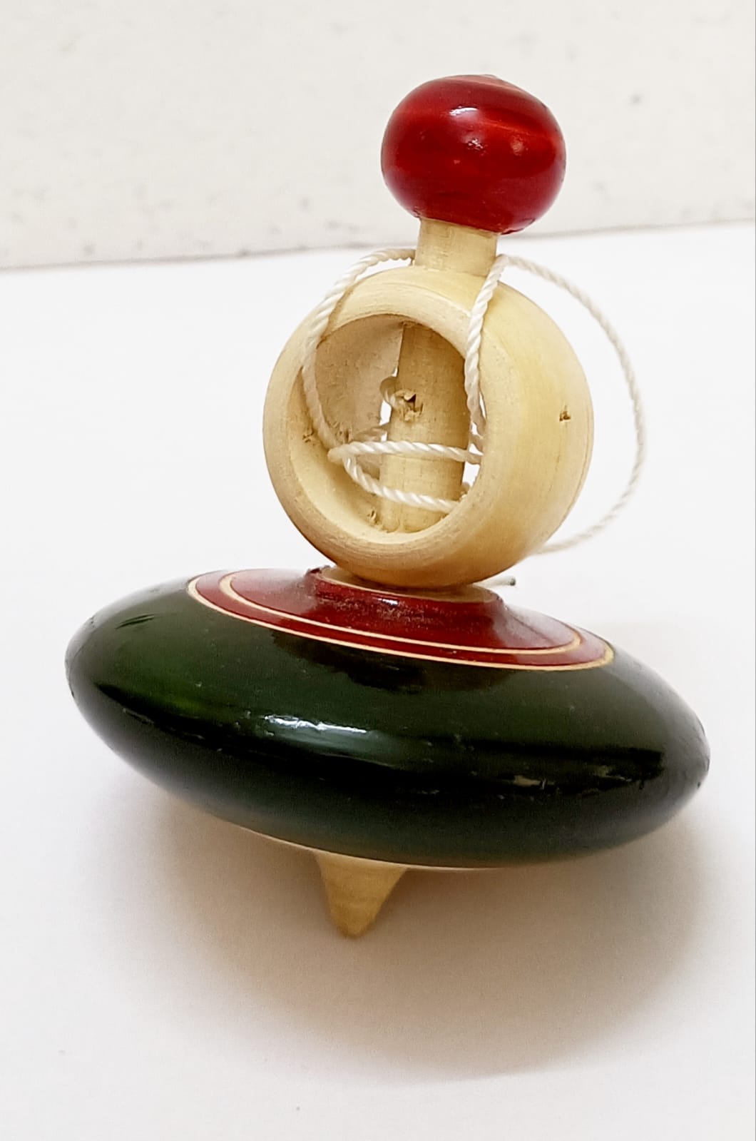 Our wooden flat Pambaram is a traditional spinning toy that comes with a rope for easy spinning.
